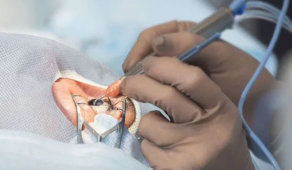 تُعرف جراحة المياه البيضاء باستحلاب العدسة، حيث تُستخدم الموجات فوق الصوتية لتفكيك وإزالة الأجزاء المعتمة من العدسة. أحيانًا يتطلب الأمر شقًا طويلًا في القرنية لإزالة العدسة المصابة ووضع عدسة صناعية مكانها.